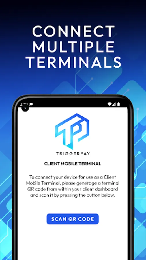 As a TriggerPay client, you can set up multiple terminals from within your Client Dashboard and connect devices by scanning a QR code.