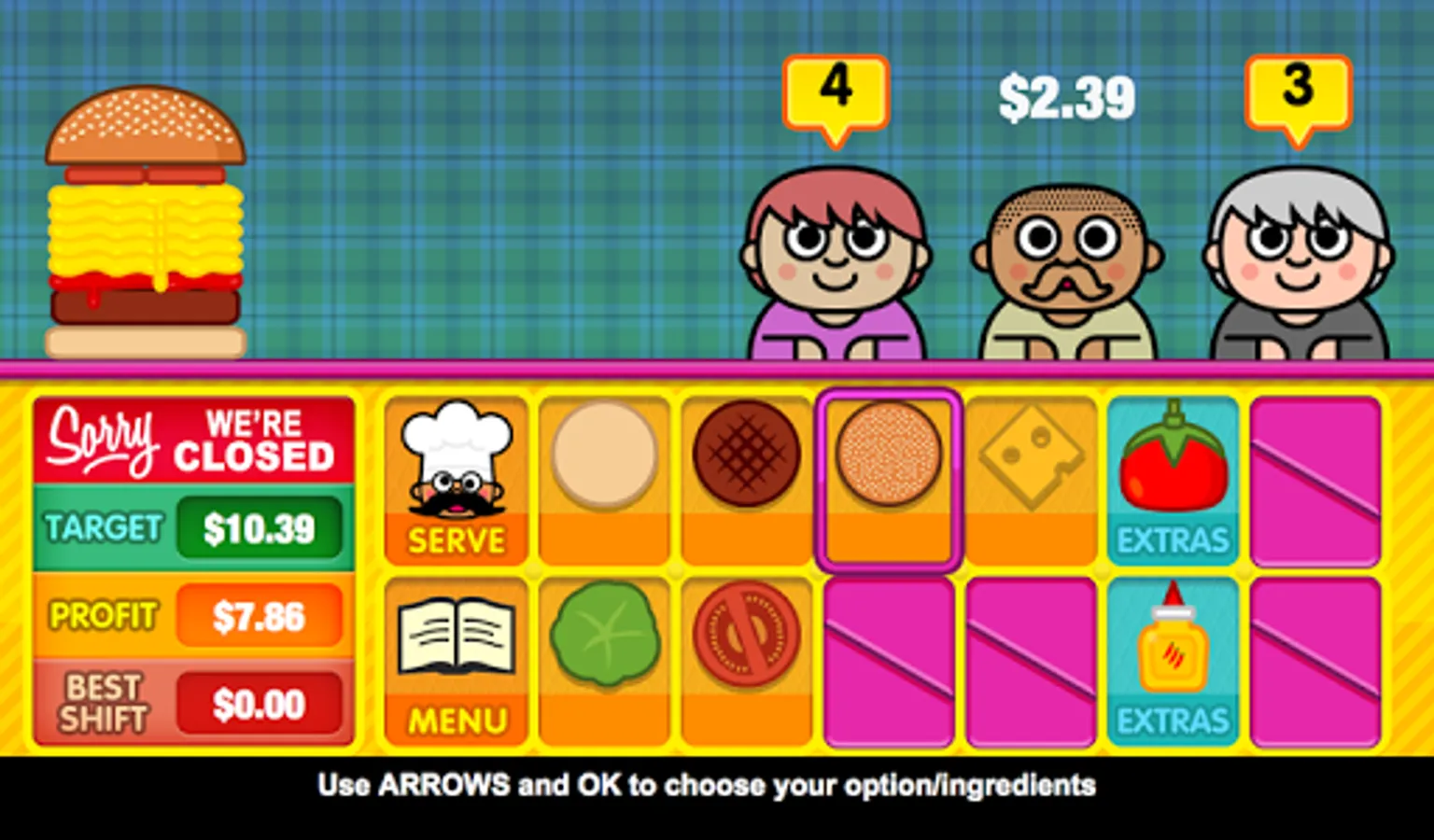 Your job couldn’t be easier: take the order, make the burger, serve!