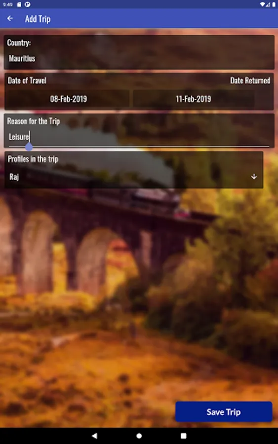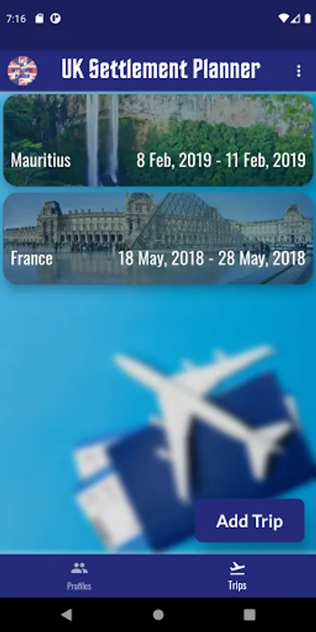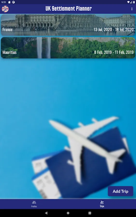 - will allow you to log your trips and vacations outside of the UK and associate it to one or more profiles