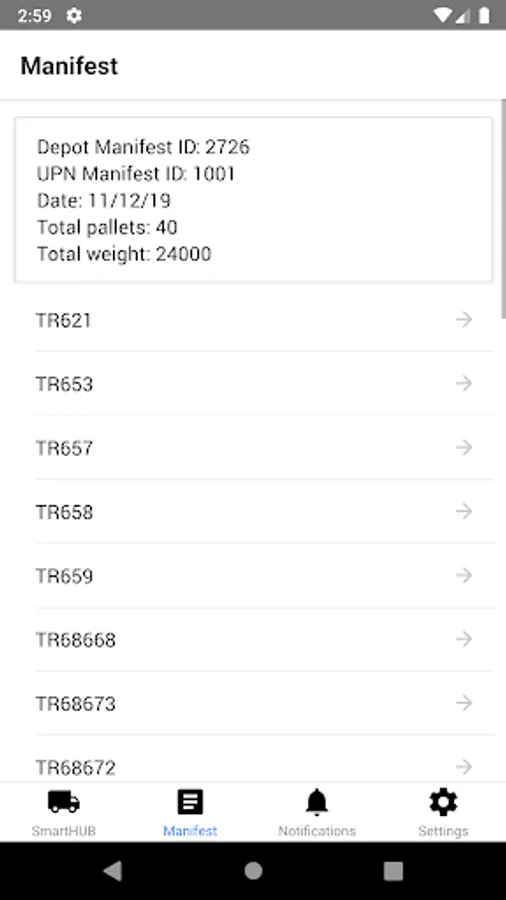 The SmartHUB app monitors and manages all trunks with GPS Tracking of inbound and outbound journeys, In-App Digital manifests, and In-App “On site Guidelines”. The app also receives “call in” notification to indicate when on site trunks are ready to be loaded.