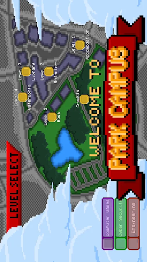 Welcome to the University of Gloucestershire Super Campus Quest Game! Explore where you will study in our pixel art platformer and avoid POB’s death rays! This game was developed by our students on Computer Games Design and Computer Games Programming courses to demonstrate their programming, art, design and team working capabilities in building a fun educational game. The game was built in Unity and C#. The idea of the game is that applicants to our courses, who do not know the campus, can use the game to explore the main facilities we offer at the Park Campus, Cheltenham.