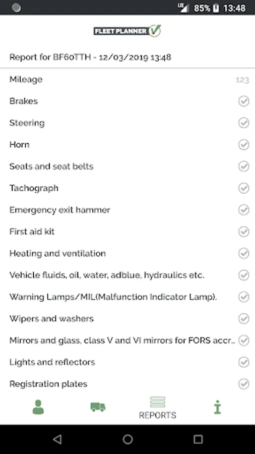 The " Fleet Planner Daily Check “mobile application for Android allows drivers to record their daily walk around check using the phone instead of paper form.