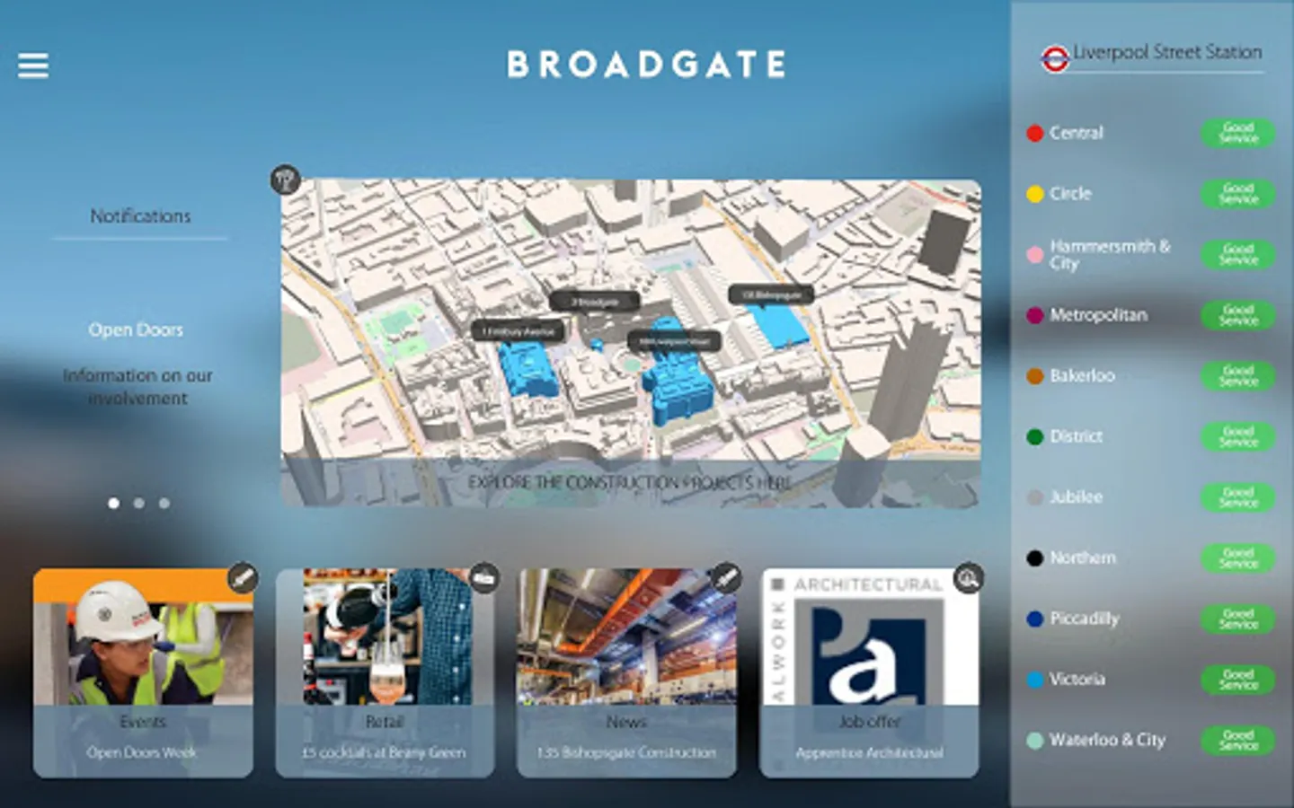 Sir Robert McAlpine was appointed principal contractor for the re-development of 100 Liverpool Street in 2016. In light of the ongoing nature of the work taking place, they and their client, British Land, recoignised the need to develop additional channels for engaging with stakeholders and the local community. The App is an extension of ongoing communications and engagement activity around construction.