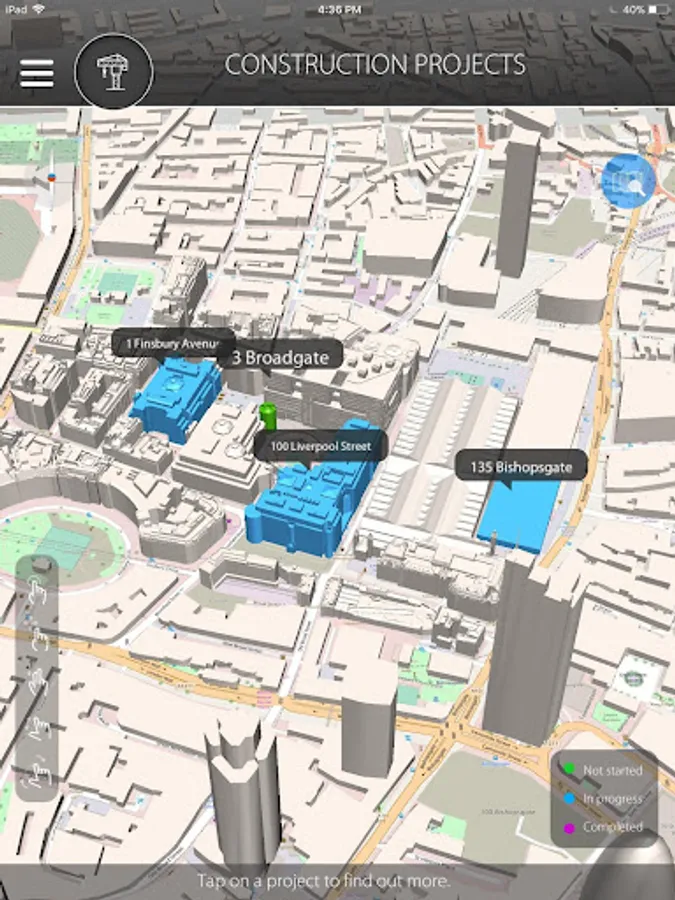 Find out what is going on behind the hoardings with this free interactive App which tells you all you need to know about construction works taking place at 100 Liverpool Street, Broadgate.