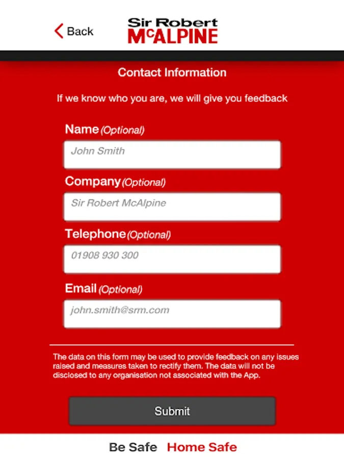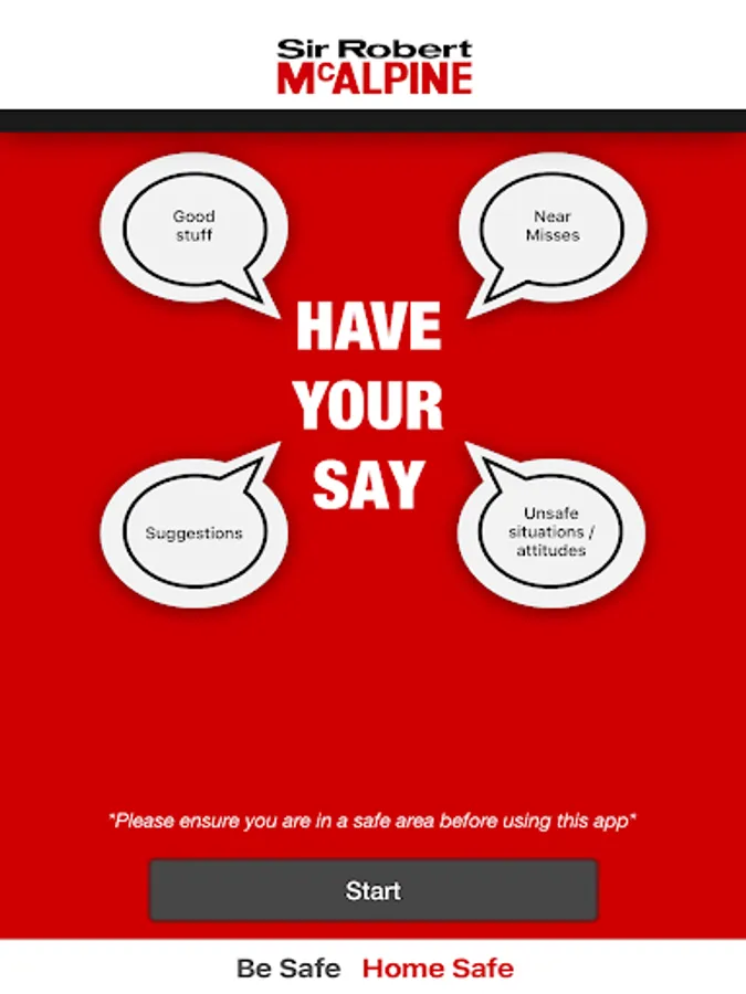 · Reinforces the Sir Robert McAlpine ‘Be Safe, Home Safe’ and Workforce Engagement messages