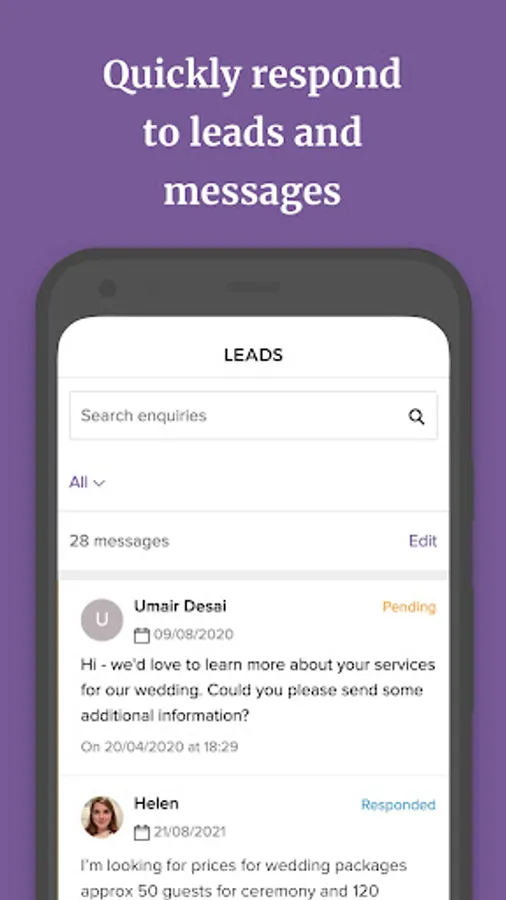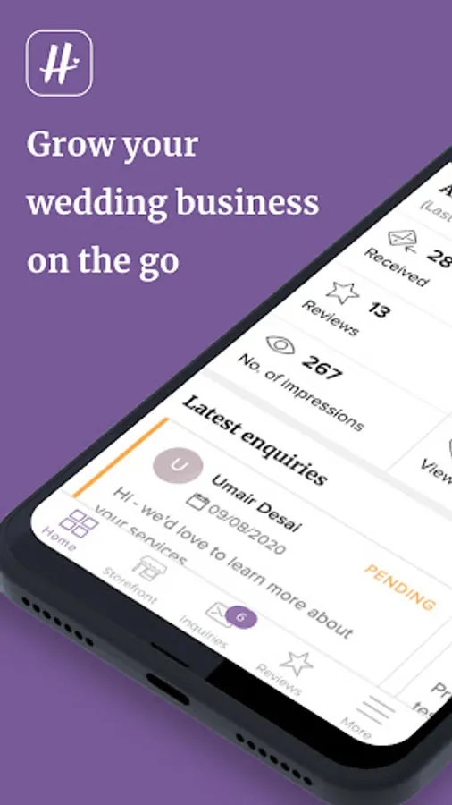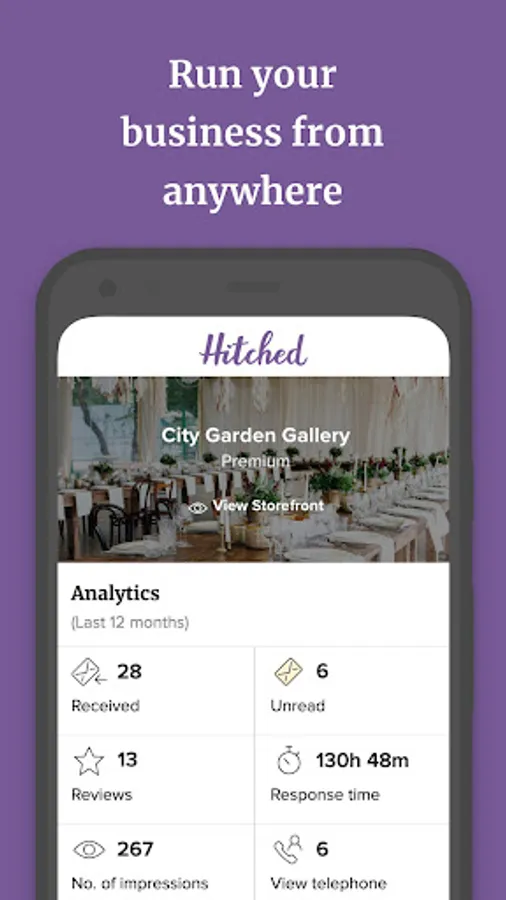 The free app from which to get the most out of your wedding business. Essential for the thousands of companies present in the portal of Hitched.co.uk, the largest bridal directory in the world.