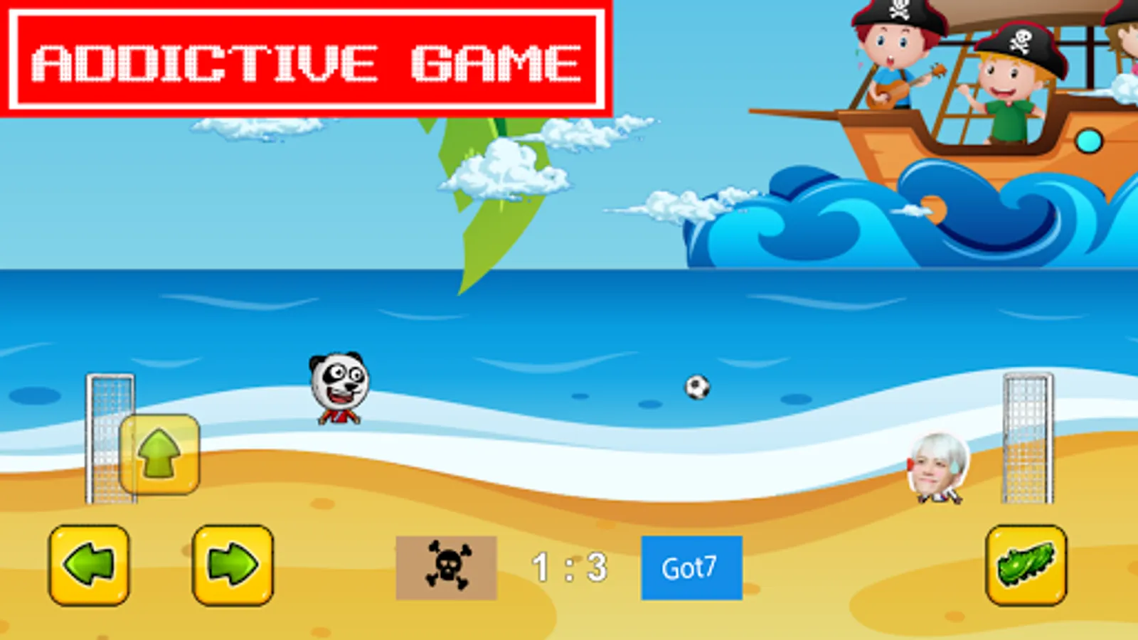 Help Argase boys to win this soccer game so they can run away from this pirate's island.