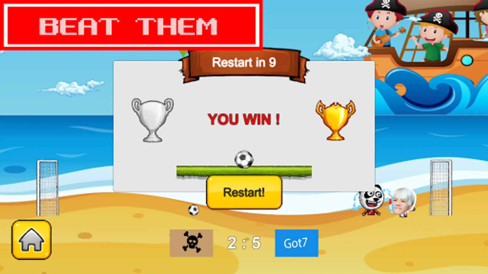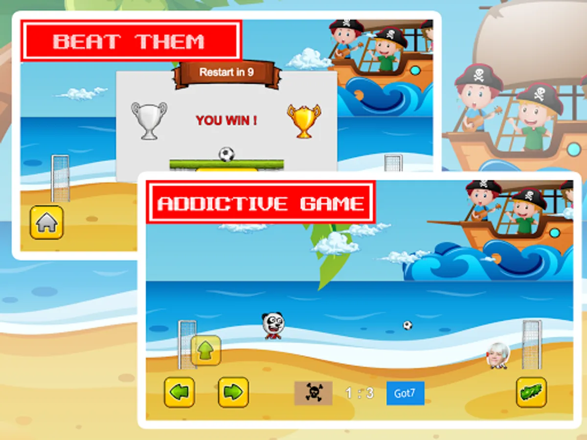 Let's help Ahgase boys beat the pirate with this addictive stars soccer head on the beach,