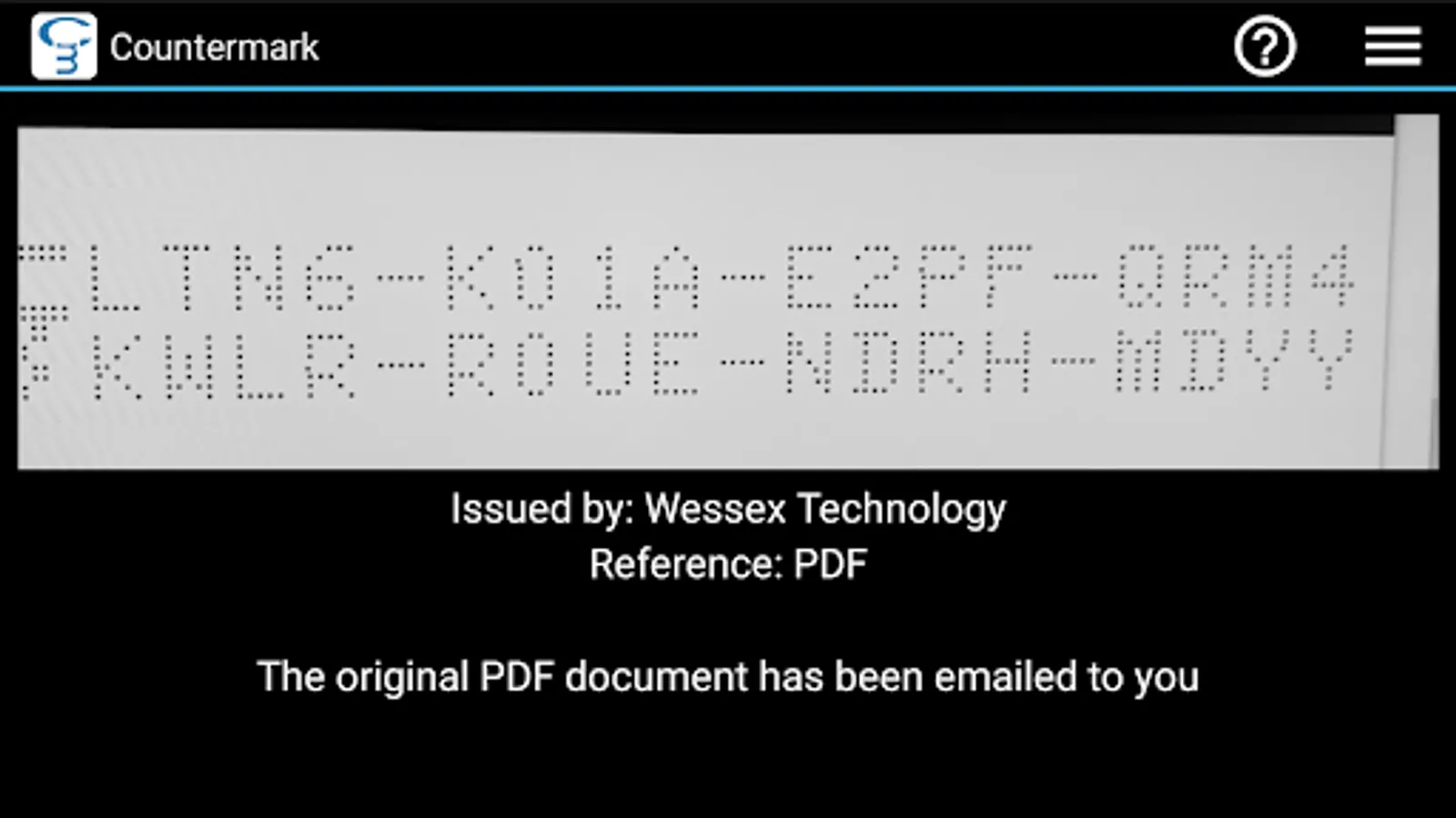 The Countermark app reads the Countermark which links to a website, an image or a PDF document.