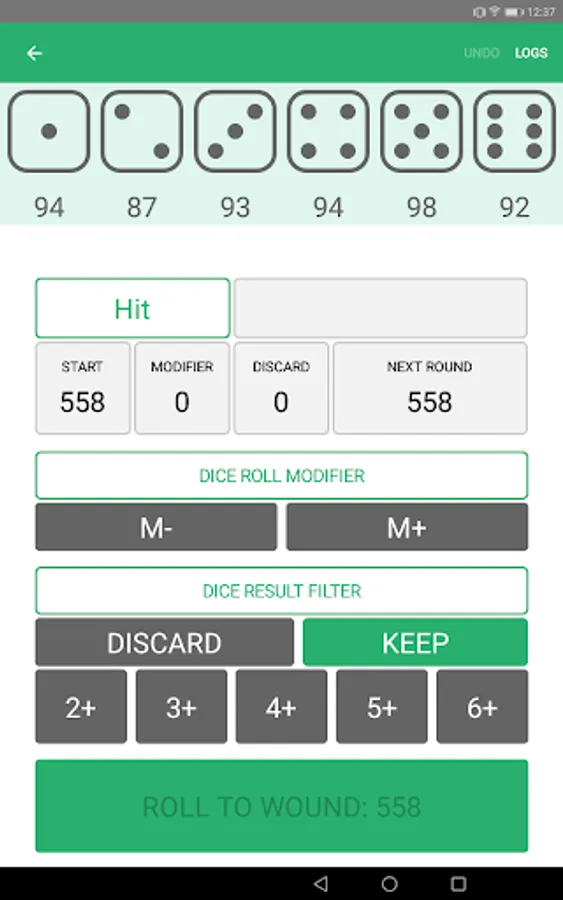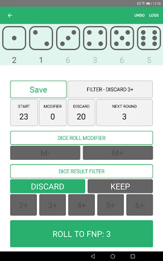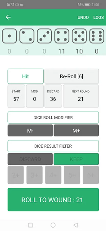 -Quick dice roll resolution with toggle between discarding above or below result.