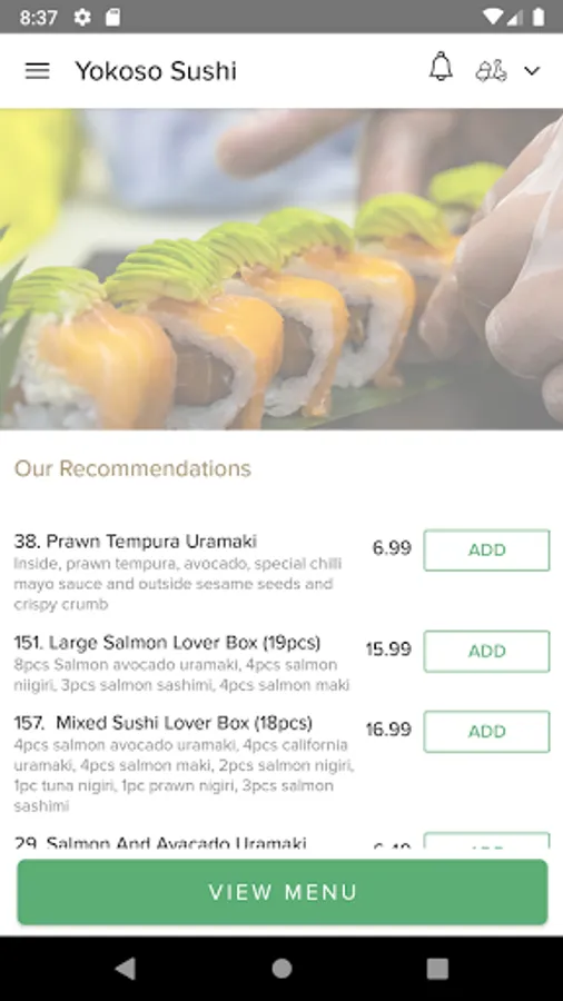 Order food online in Yokoso Sushi! It's so easy to use, fast and convenient. Try our new, online app which contains our entire takeaway menu. The Yokoso Sushi is located in Ilford. You can now order online, all your favourite dishes and many more delicious options, and have them delivered straight to your door in no time at all. Here at Yokoso Sushi we are constantly striving to improve our service and quality in order to give our customers the very best experience. As a result, we are finally proud to unveil and introduce our latest improvement, our new online ordering app!