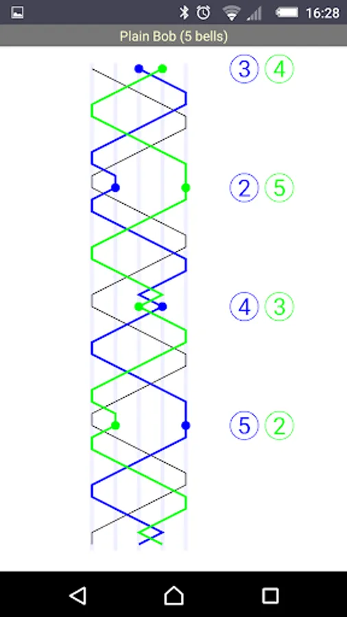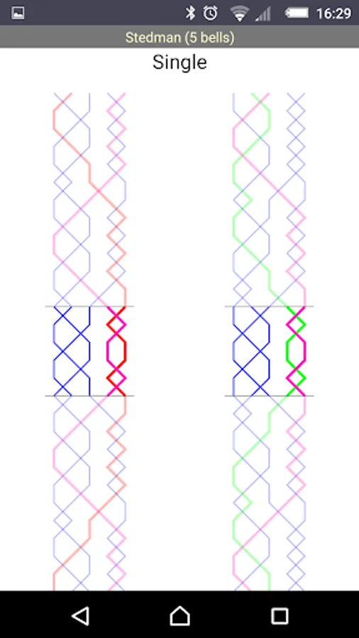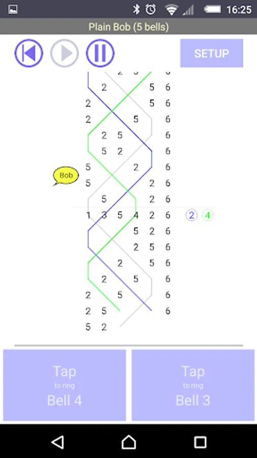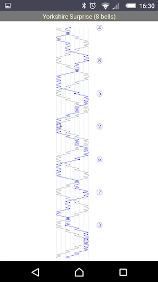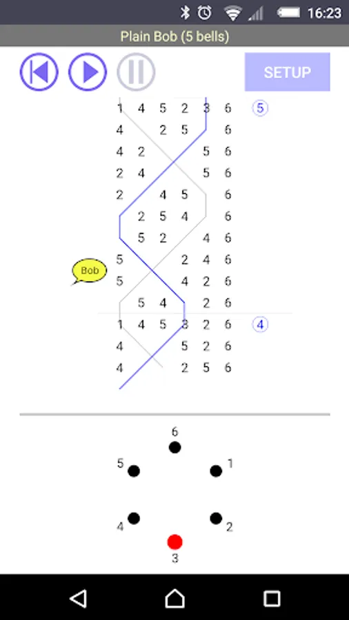 Alternatively, tap the screen to bring down the top bar that contains the 'burger' menu in the top left (the method selection/method view menu), a drop down list of practice bells (including pairs of bells for hand bell ringers), and the context sensitive menu (three dots arranged vertically) that allows you to choose how Methodology represents the view you're in.