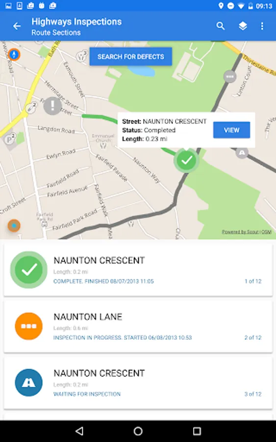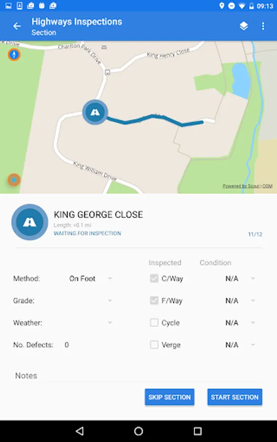 Highways Inspections allows Inspectors to complete inspections of Highways. Inspections are allocated to mobile users based on a collection of sections or routes belonging to the network. The Inspectors can then record any defects found along sections or on associated assets.