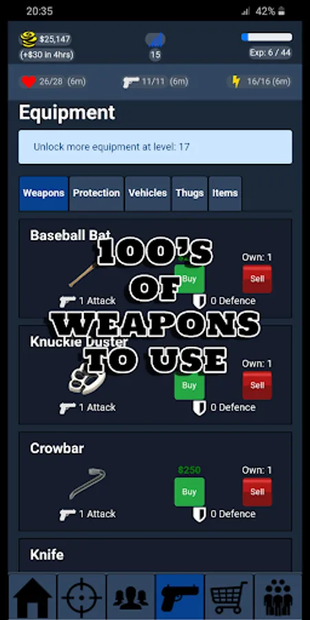 With 100’s of weapons to buy you can boost your mob’s strength as you take on other crime families and individual gangsters. M4’s to grenade launchers, you can arm your mobster and the rest of your mob to dominate the criminal underworld.