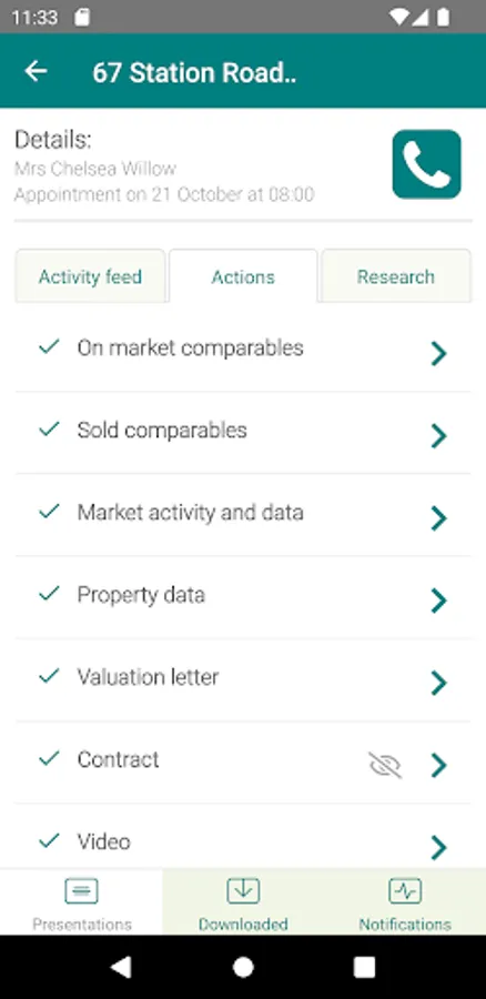 • Client specific pre and post appointment presentations clearly communicate why to instruct your film over a competitor and include comparable on-market and sold properties with local market performance graphs