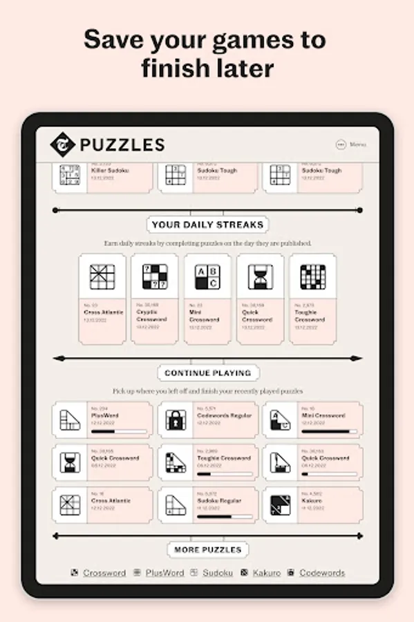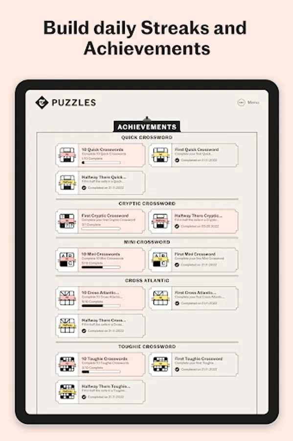 Showcase your puzzling prowess by building daily streaks for finishing your favourite games. You'll also be able to earn fun achievements by reaching milestones and taking on new brain-teasers.