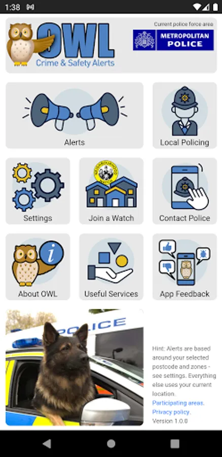 IMPORTANT: After installing and opening the app, please allow it to ALWAYS use your location and to send you push notifications. Your location is used anonymously so you can receive local alerts. We do not collect any personal information and OWL, the police and councils do not store or have access to your location or history.