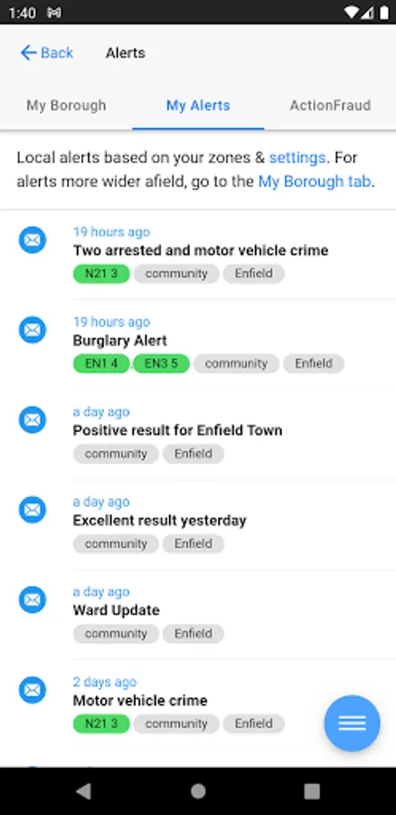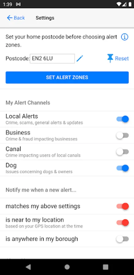 If you get too many notifications you can switch them off and just read the latest alerts within the app, or if you don't get enough you can switch on notifications for all alerts in your borough.