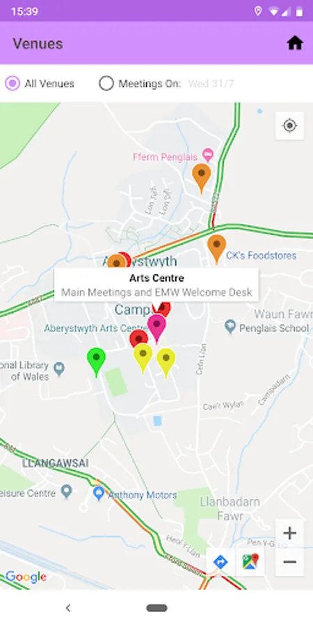 * See a map of all meeting venues and use Google Maps to navigate to them