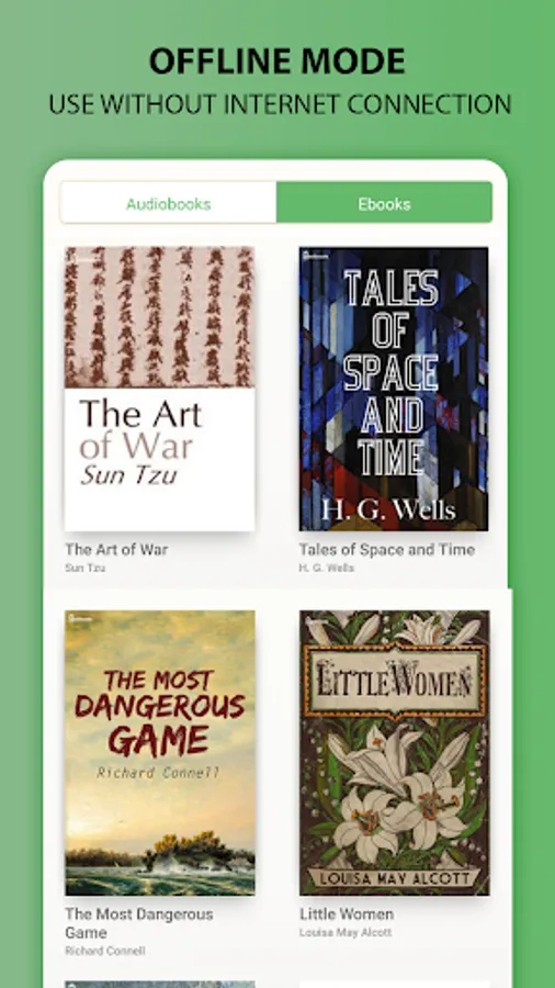 Many free books also have audible version - of audio books. You can listen to audiobooks with audiobook player. Download the audio book and listen to it without access to the internet.