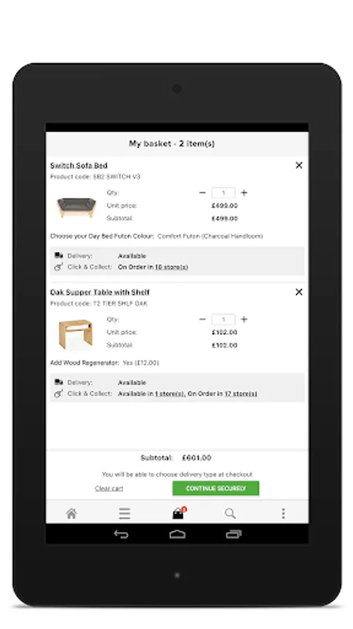 - Easy browsing. Browse multiple products, view your basket and checkout, find your nearest store, check delivery and collection options and more, and all at the same time - just switch between different tabs and restart from where you left it.