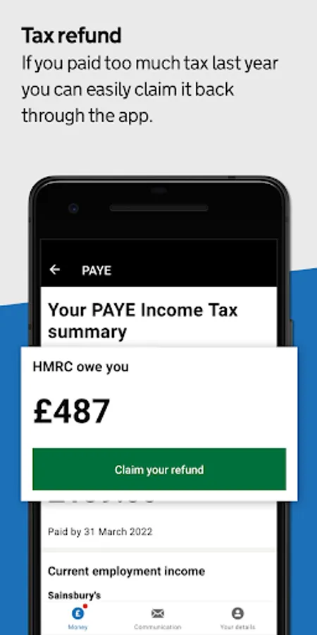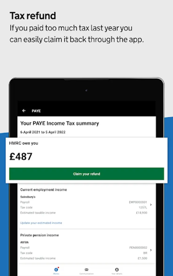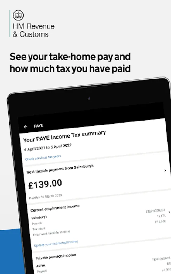 The only app to access your personal tax details with HMRC. Take control of your finances and join over 700,000 people using the HMRC app every month. Download the HMRC app from the UK Government here.