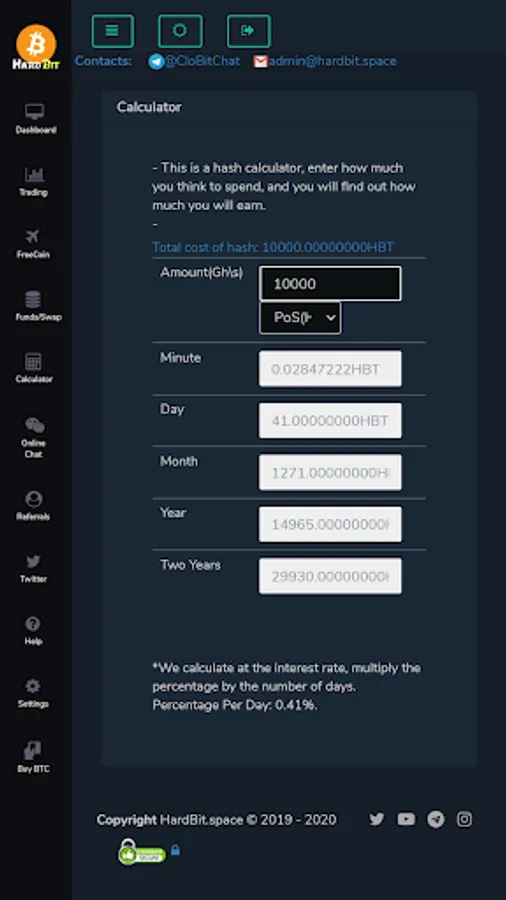 The HardBit platform allows you to earn on a Bitcoin Litecoin Dogecoin Ethereum cryptocurrency cloud mining, our daily rate is 0.41% of income, you can also sell your computer power, and someone will definitely buy from you.
