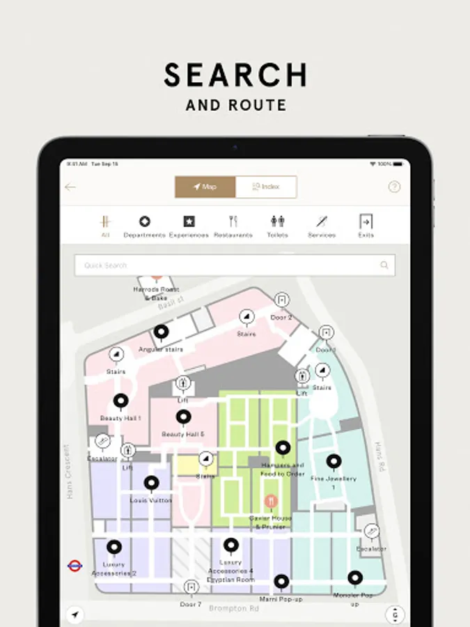Stay up to date on new brand launches and in-store pop-ups, and plan your visit by prebooking events and experiences. Make the most of your time in Harrods using the Mobile Store Guide – an easy navigation tool that can be accessed from the ‘Visit’ link. The Store Index will let you search for brands, services and restaurants, and you can use the interactive floor maps to identify your location and generate a route to your chosen destination.