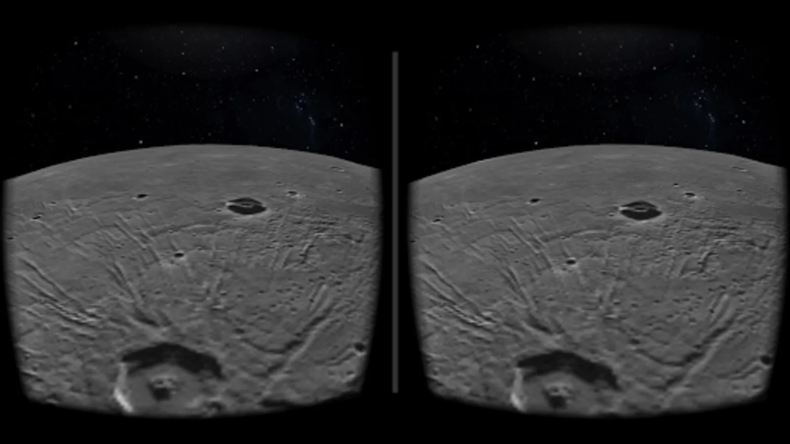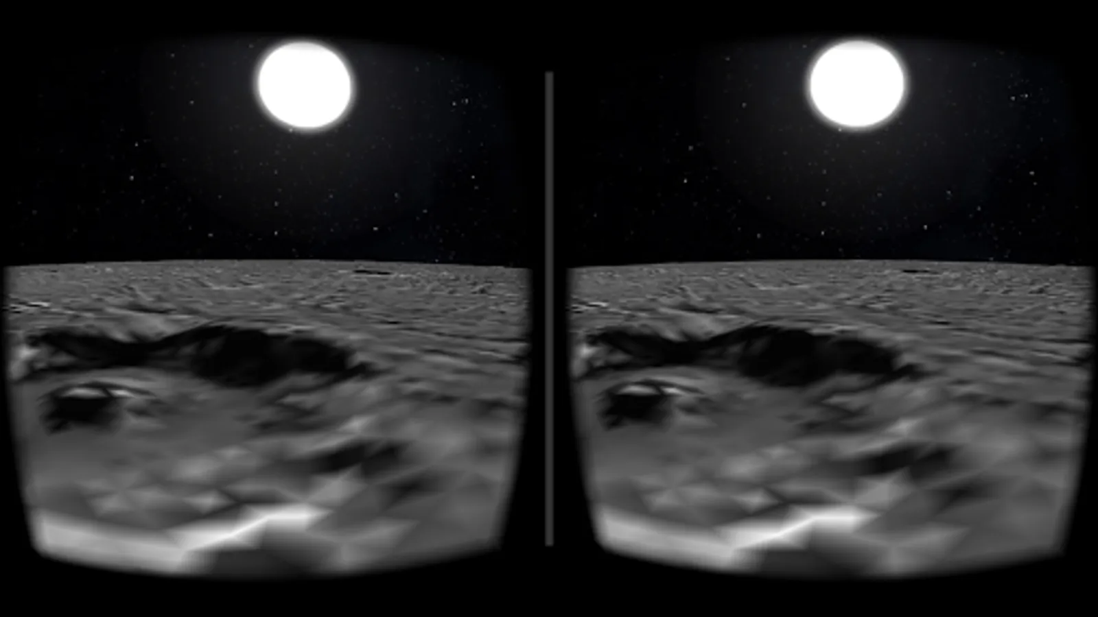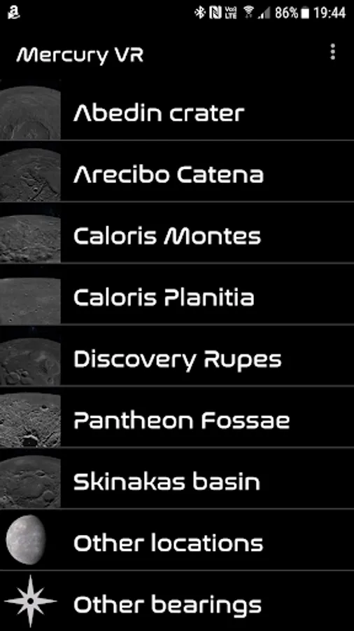 This Google Cardboard app allows you to travel to the planet Mercury and explore it's surface in VR. Select a landing site and then once you reach the surface you can explore by tilting you head left and right to change you direction of flight. Looking up and down will change your altitude and in the settings you can enable a head up display to help you navigate further.