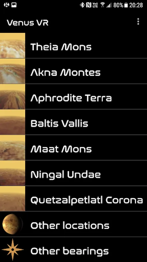 This Google Cardboard app allows you to travel to the planet Venus and explore it's surface in VR. Select a landing site and then once you reach the surface you can explore by tilting you head left and right to change you direction of flight. Looking up and down will change your altitude and in the settings you can enable a head up display to help you navigate further.