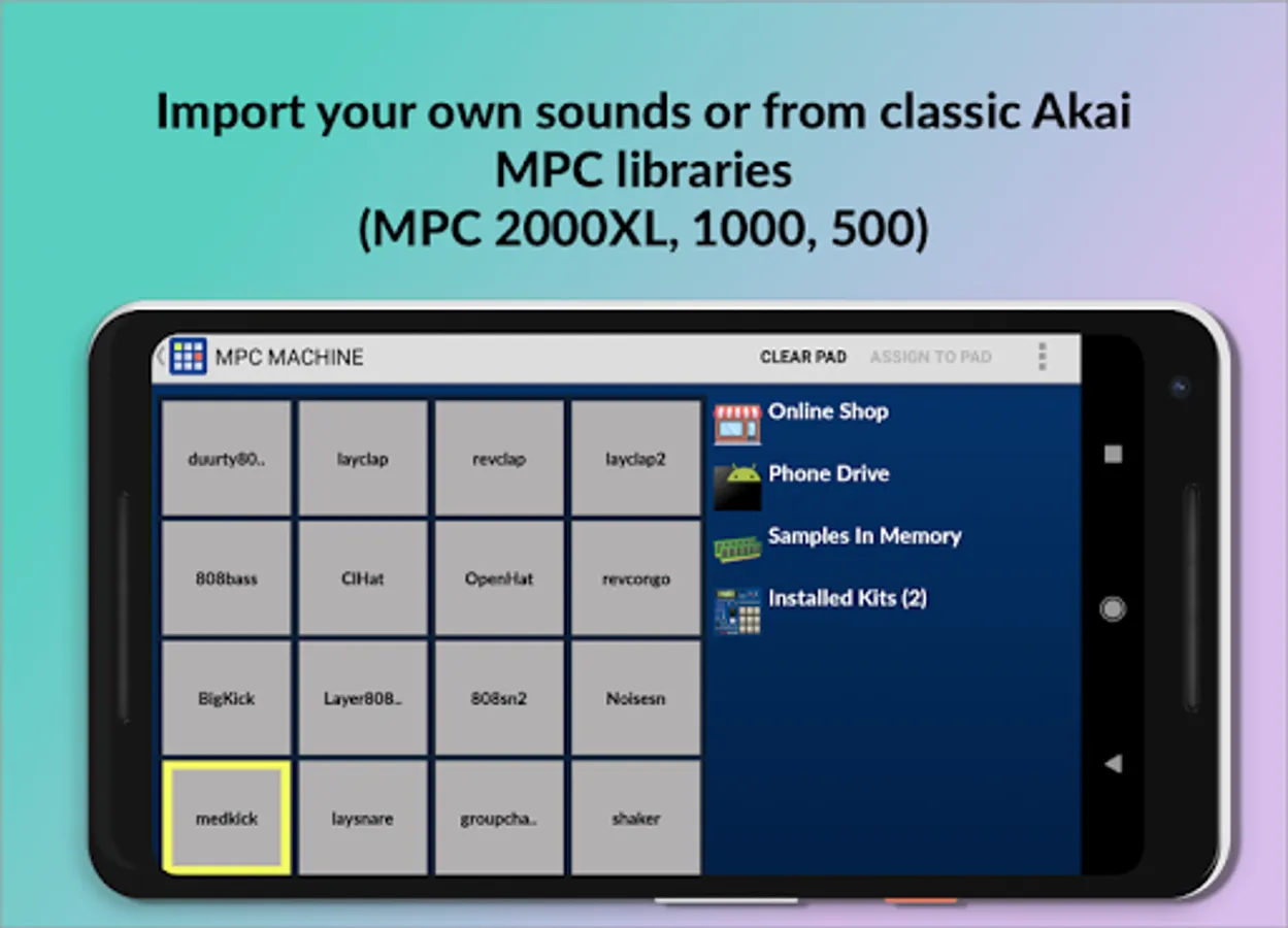 Its a beatbox drum machine app, music production, a hip hop drum pads sampler, house music beat maker, a drum pad machine app aimed to make music for any genre with a groove. Add send effects to drum pads, and mix your recorded performances. MPC Machines feature long list make it the number one app to make beats with on the go, and when you are finished making. Export your beats as audio, and import them into your favourite DAW or if you own an Akai Drum Machine, save your kits for continued use in the studio to finish your beats.