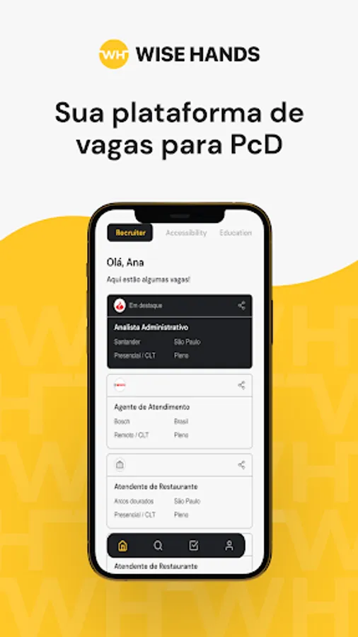 Aplicativo de busca de vagas de emprego, 100% gratuito com o foco em pessoas com deficiência (PcD).