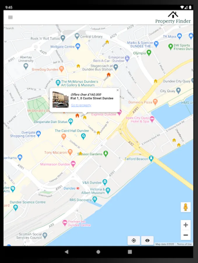 The first preview release brings you a map full of properties for sale in the Tayside and Dundee area, updated daily. Easily see what lies near you and follow as you navigate your way around the streets in search of your new purchase.