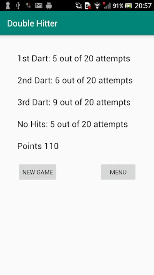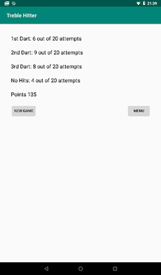 In this game you will have 20 visits throwing for the treble 20 (or another treble of your choice), 60 darts in total.