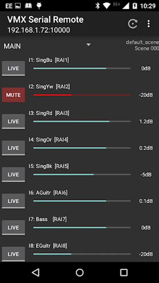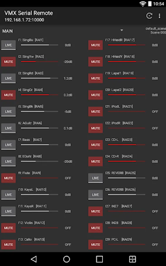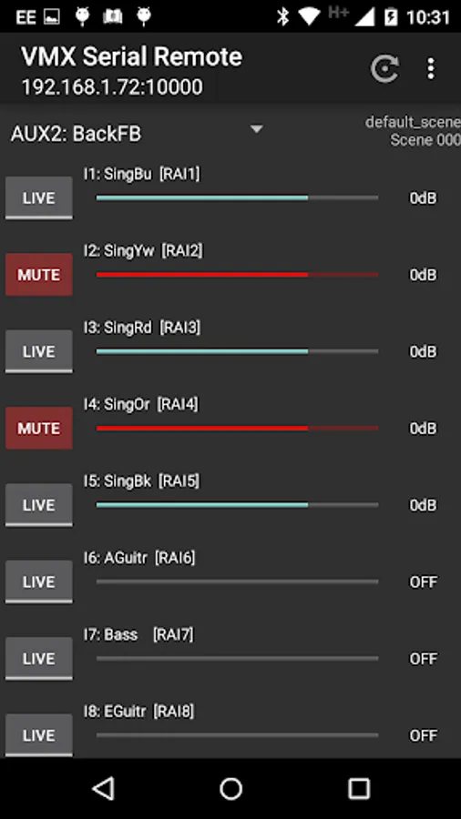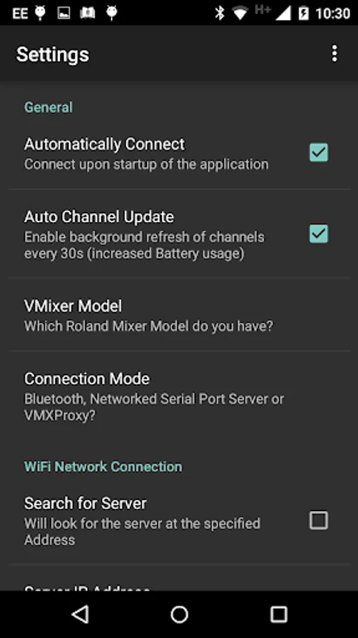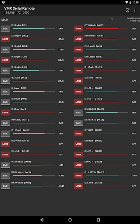 Roland offer an iPad App to control the mixer, but this uses the USB port preventing USB recording, it also is 1:1 only allowing one user to alter the mixer settings. This app runs on Android (phones or tablets), allows multiple users to control feeds (e.g. Musician's controlling their own monitor mixes), and has a considerably simpler user interface.
