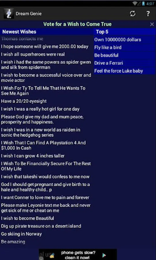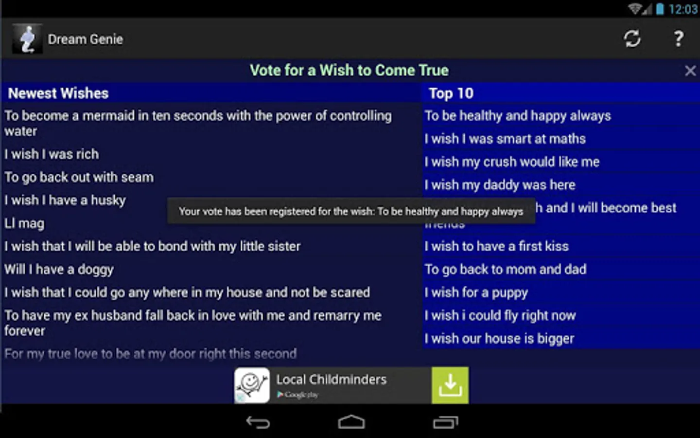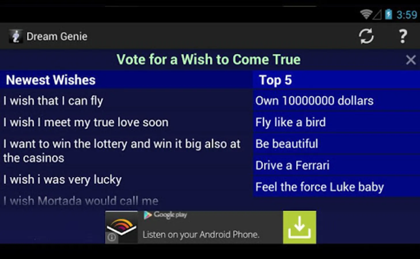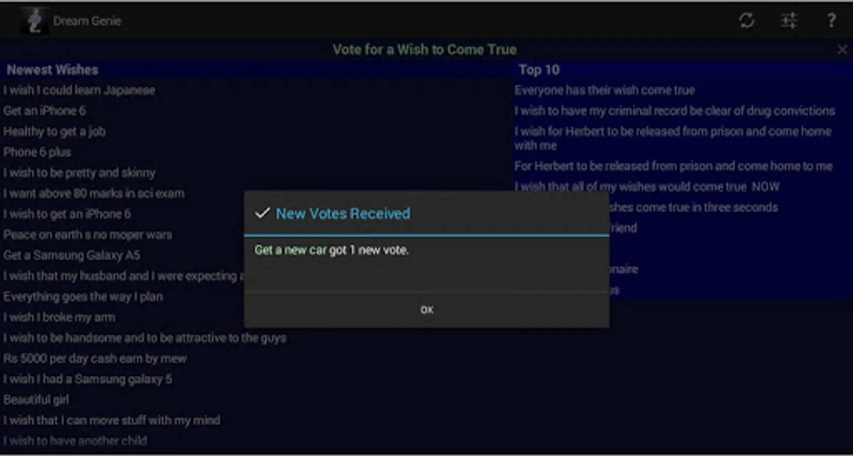 This app is mostly for fun and to help make your dreams come true even faster visit the Dream Genie's website at https://dreamscometrue.me.uk
