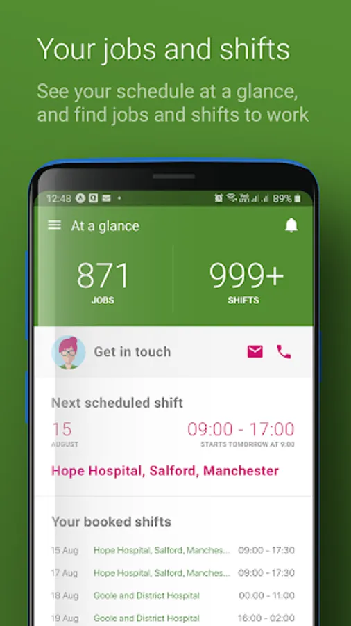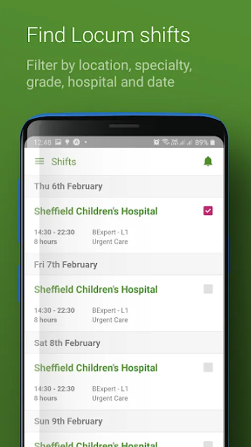 Apply and directly book shifts, when it is convenient for you. See the full rota for long term vacancies or pick and choose from ad hoc shifts. Filter and drill down to your exact grade and specialty. Find the best shifts for when you want to work.