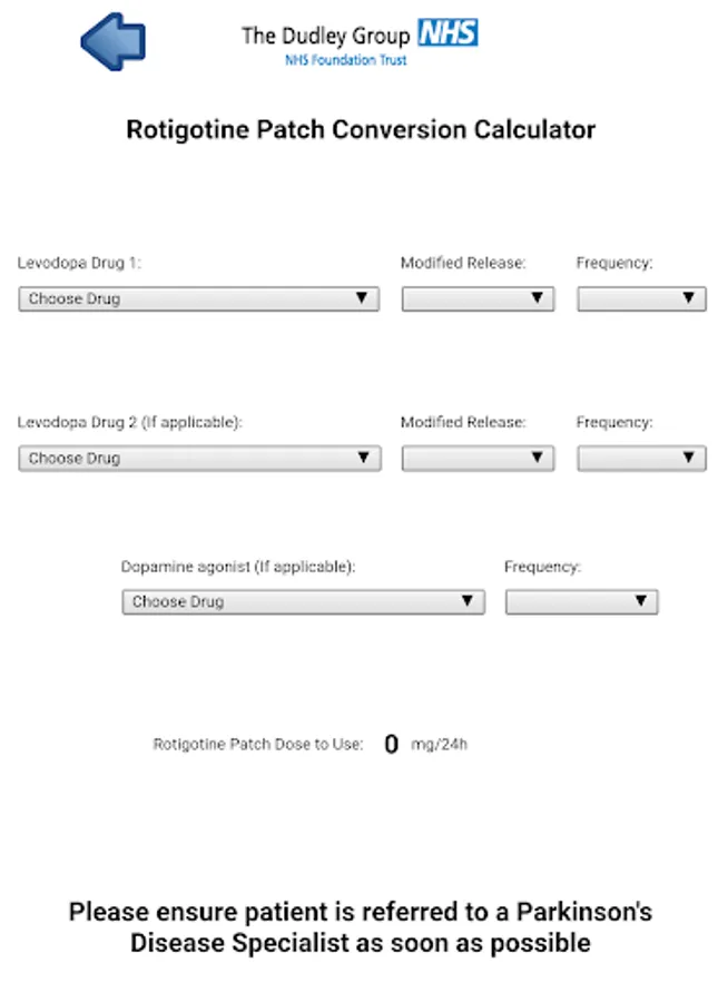 Parkinson’s disease management of patients with compromised swallow or deemed nil by mouth (NBM) oral to patch calculator and dispersion guidance.