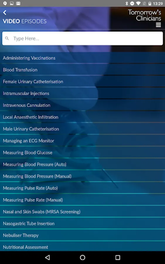 Tomorrow’s Clinicians is a digital medical learning resource designed to enhance your understanding of clinical skills procedures. It allows you to consolidate your knowledge of common procedures performed in a healthcare environment, provides a visual insight, and can be used in conjunction with local guidance.