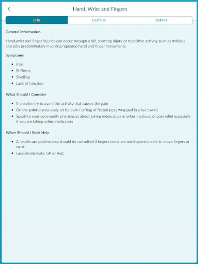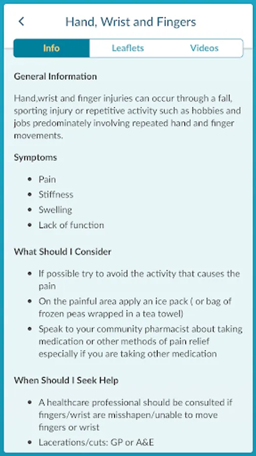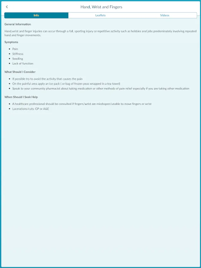 • As a first port of call for information about your MSK injury/condition • In conjunction with your medical treatment • For self-management of your injury/condition