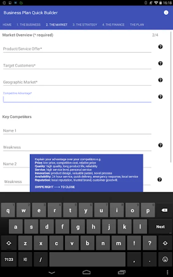 This app creates a great business plan in three quick steps: