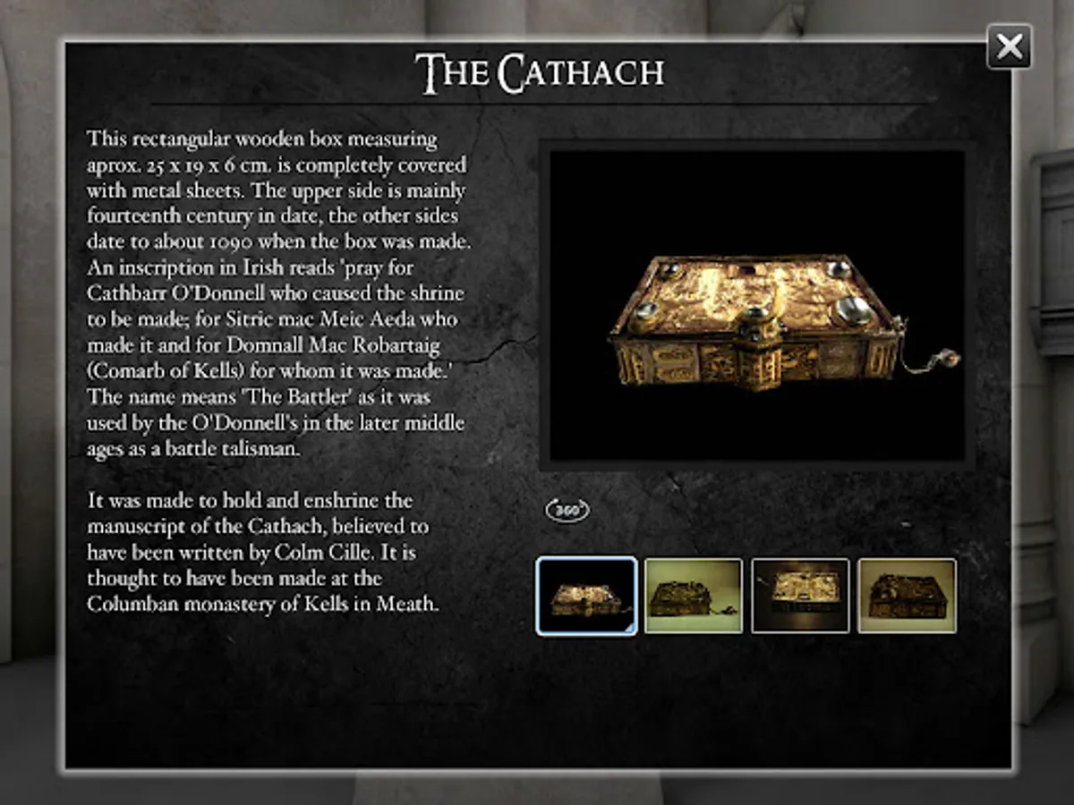 In this museum you will find examples of illuminated manuscripts, stone crosses and treasure objects displayed within a series of exhibition rooms or galleries dedicated to each art form. Visitors here can interact with these precious art works in a manner not possible within a real museum.