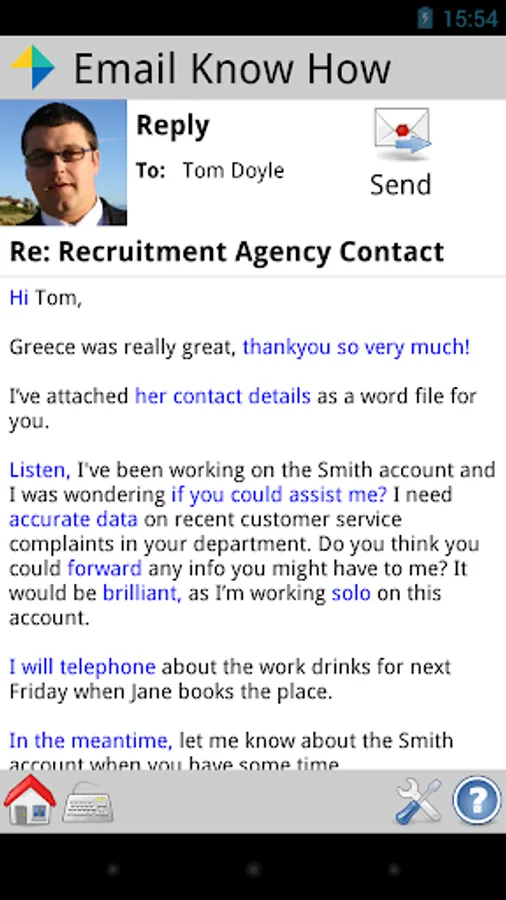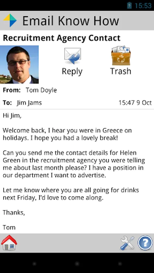 • The player will be able to identify the nature of the relationship by checking the name of the sender against their email account contact list and interpreting the style and formality of the email.