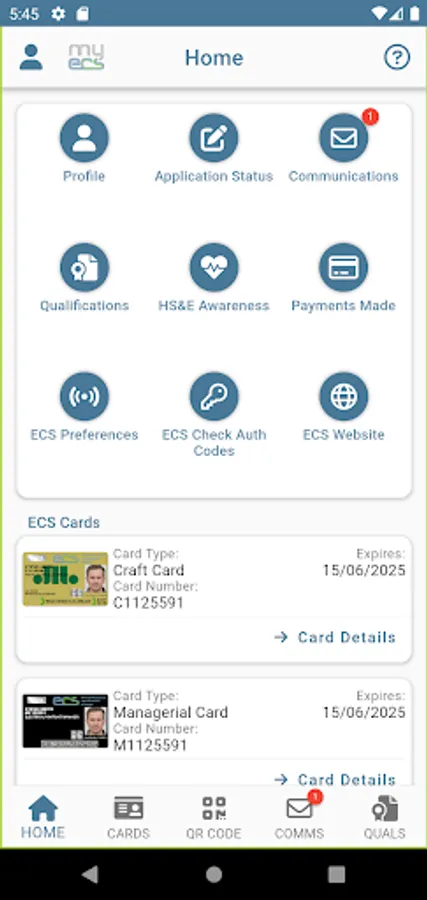 - Real-time ECS card images – as soon as an application or renewal is approved, your ECS card is live here in the App