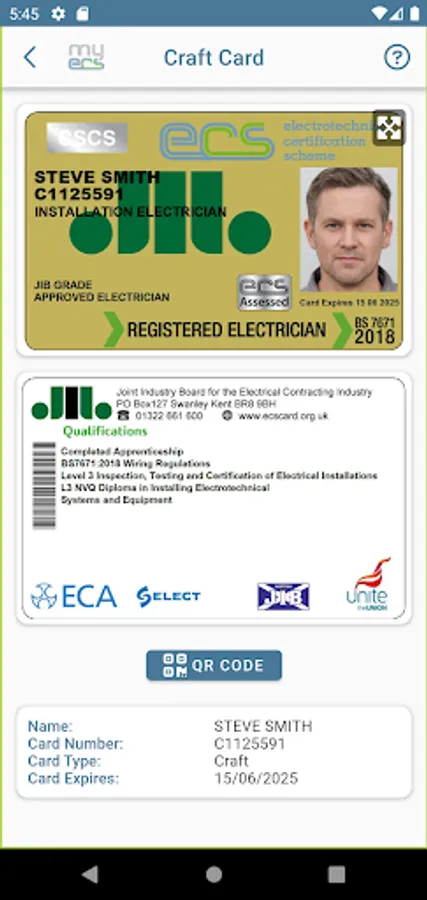 The App gives you access to a QR code for real-time checking of your ECS card, which is an essential part of checks to access construction projects and sites across the built environment in the UK. The MyECS App is fully compatible with CSCS Smart Check as part of the UK-wide system for checking all 2 million plus CSCS partner cards.