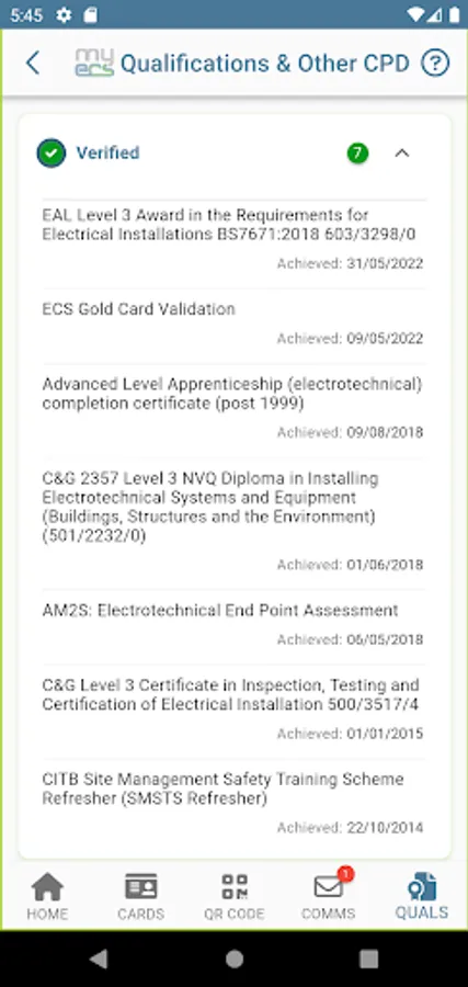 - Continuing Professional Development (CPD) Report – make sure you can evidence how you keep up to date with latest changes in your sector by downloading your qualifications and CPD report