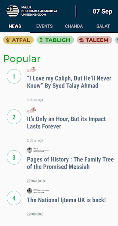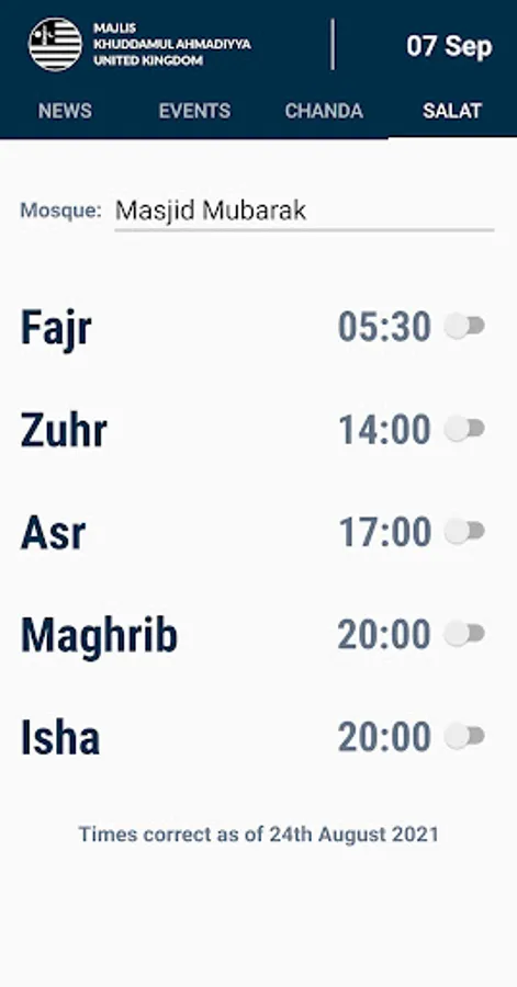 Welcome to the official app for MKA UK. The app has four main sections: News, Events, Chanda & Salat