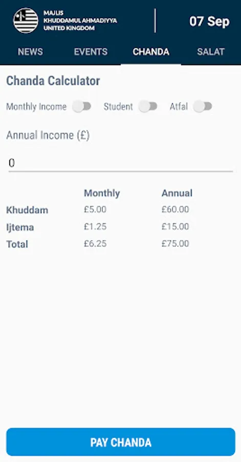 * The chanda section provides a chanda calculator as well as link to the MKA UK Donation Portal.