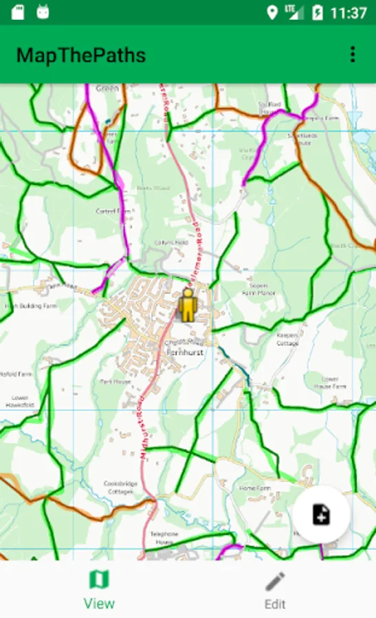MapThePaths (https://www.mapthepaths.org.uk) is a project to add all the rights of way (RoWs) and permissive paths in England and Wales to OpenStreetMap fully tagged. This accompanying app helps you find the locations of RoWs from council-supplied data while actually out surveying in-the-field, helping you locate where there are missing paths or paths without a designation tag on OSM.