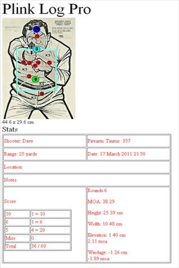 Plink Log Pro is an informal target logger, suitable for all disciplines of target sports; primarily firearms based (rifle & pistol shooting), users are also using it for airgun & archery. Strings of shots can be placed on each target and saved for later viewing. Targets can be panned & zoomed with standard gestures. Users can add their own targets.Strings can be compared on target, statistics can be generated & compared such as MOA calculation & scoring. Plink Log Pro has been released in various staged releases, incorporating major new functionality with each release. Subsequent planned releases are still in preparation, as are incremental releases for any bug fix or user suggestion/request.